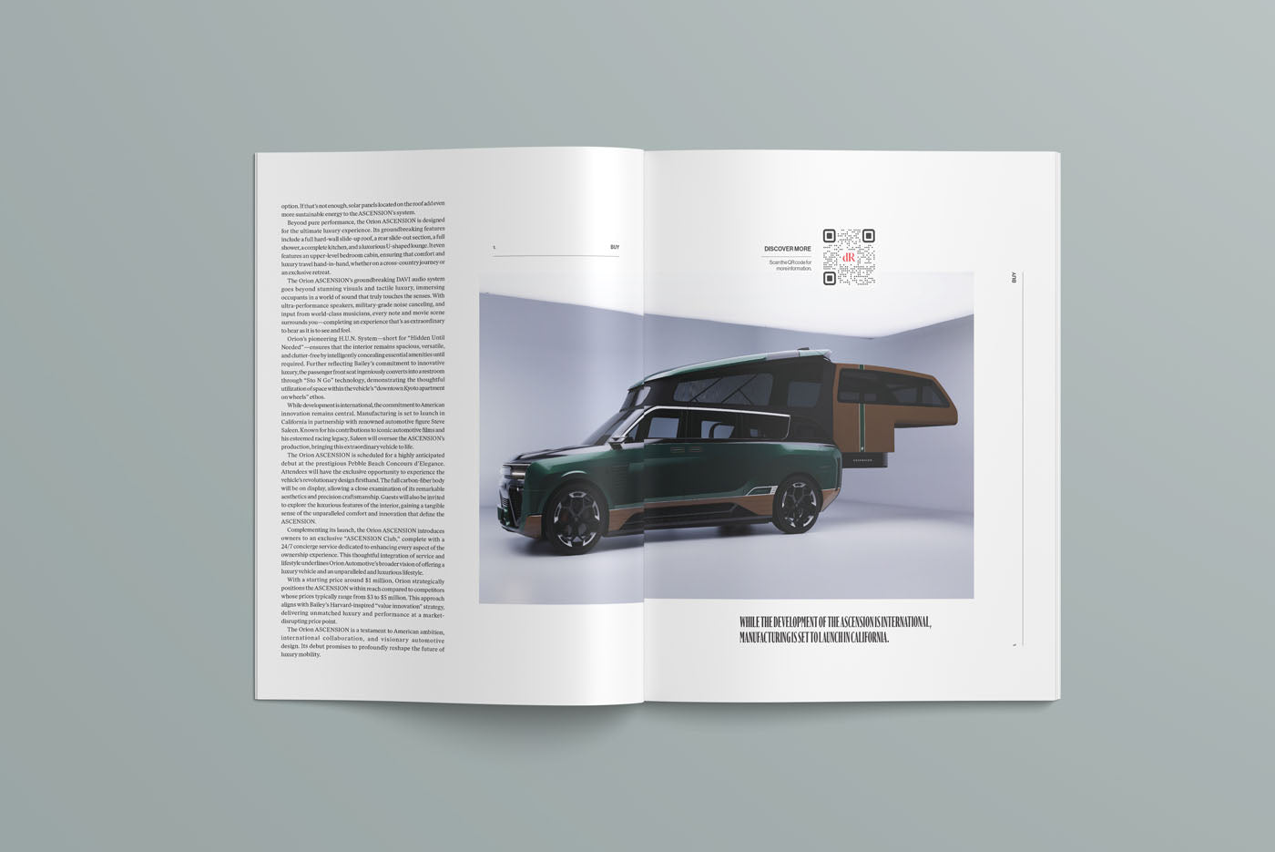 Our cover car is certainly unique: Orion Automotive’s ASCENSION reimagines the luxury, high-performance SUV as a mobile living space – complete with a full-sized bed, lounge area, kitchen, and shower. This groundbreaking ‘land yacht’ blurs the line between grand touring and refined residential design.