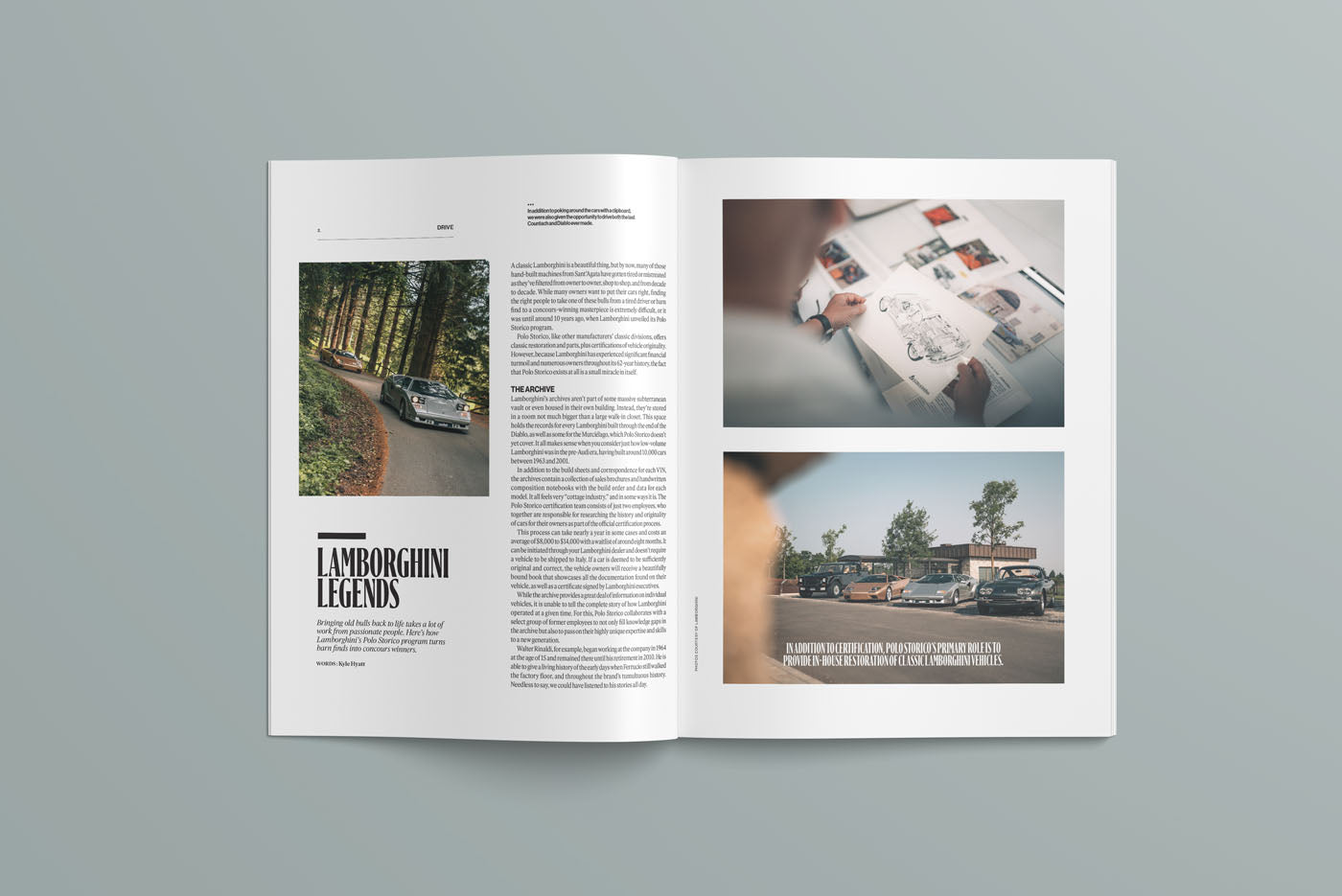 In our DRIVE section, Kyle Hyatt visits Lamborghini’s remarkable Polo Storico, where legendary models like the Countach, Diablo, 400 GT, and LM002 are brought back to life through world-class restoration – and he also gets behind the wheel of these legendary bulls. Jordan Aquistapace drives the spectacular road at Colorado’s Pikes Peak Mountain with the fabulous Rolls-Royce Owners’ Club, while I meet father-and-son duo Neil and Stirling Fairman to explore their stunning collection of uniquely liveried Ferraris.