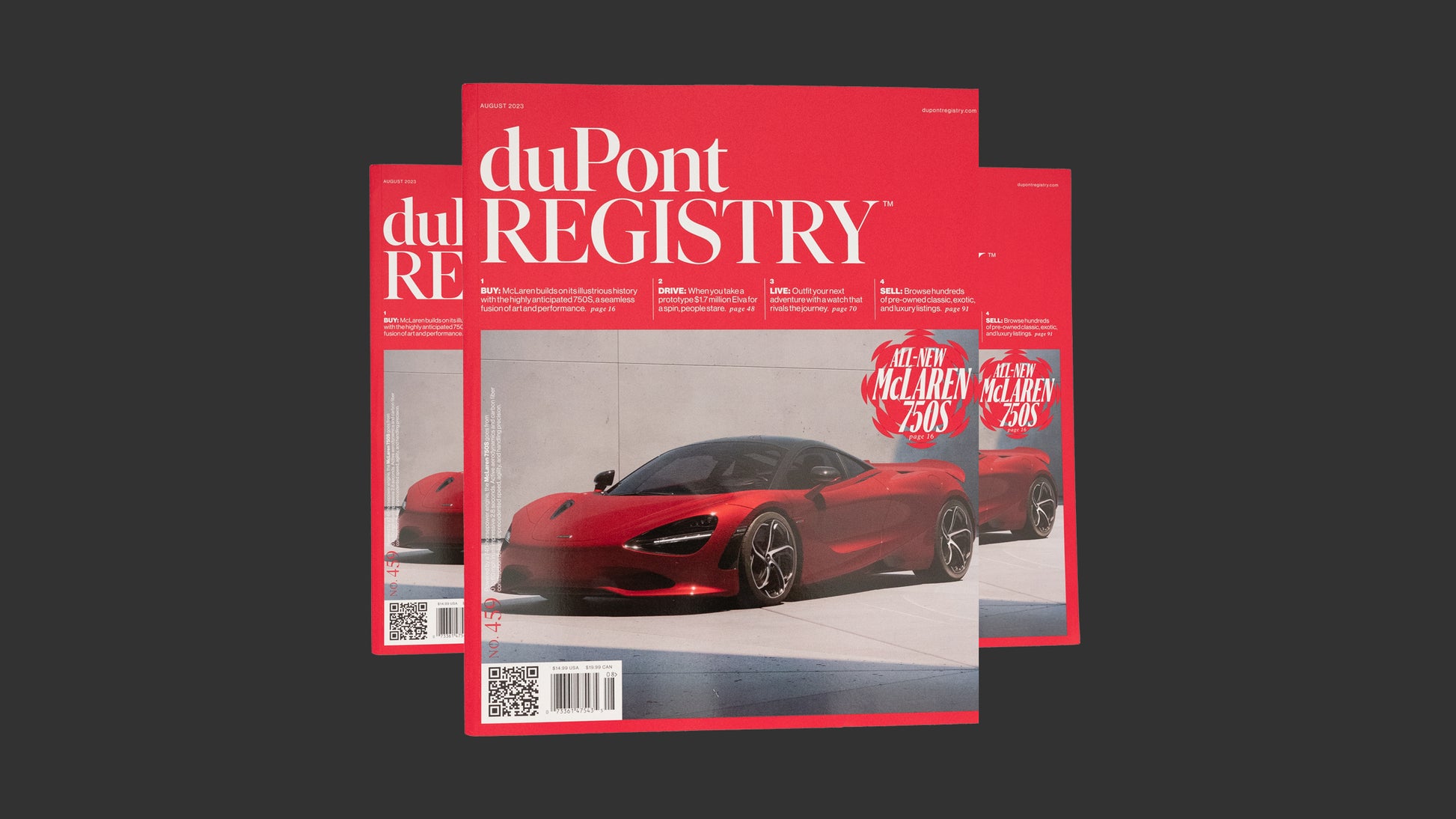 Inside the NEW duPont REGISTRY magazine is an all-new layout that features four distinct sections: Buy, Drive, Live and Sell. These following along the exotic car ownership experience and feature original editorial.