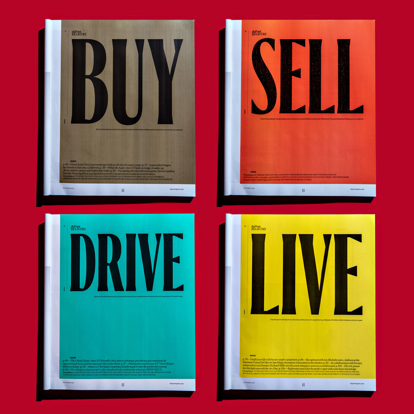 Inside the NEW duPont REGISTRY magazine is an all-new layout that features four distinct sections: Buy, Drive, Live and Sell. These following along the exotic car ownership experience and feature original editorial.