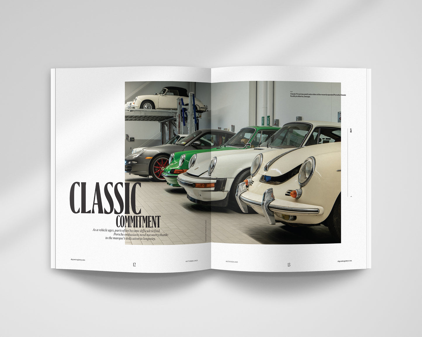 Our cover story (page 12) focuses on this special division of Porsche, in particular the Porsche Classic Center that opened in 2019 in Atlanta, Georgia on the same campus as the Porsche Experience Center and the new West Track. It’s a modern building, clean with straight lines, an aesthetic contradiction to the sometimes dirty work that goes on inside.