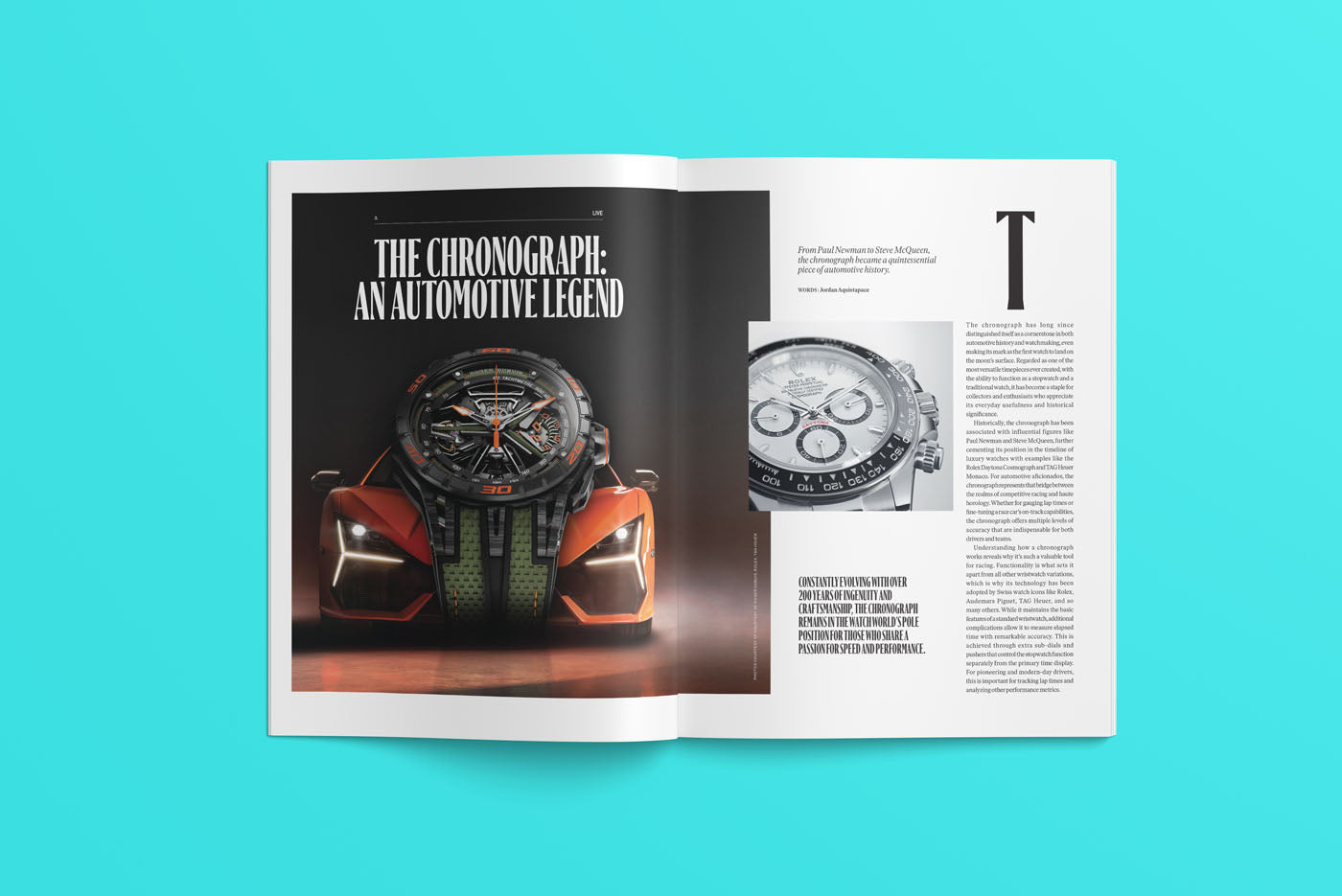 For our LIVE readers, we’ve curated content that celebrates the intersection of automotive passion and lifestyle. First, we explore the timeless appeal of chronographs, the quintessential automotive watch, perfect for those who appreciate precision on both the road and the wrist. Then, we shift gears to fashion, highlighting a selection of items inspired by the automotive world. From leather jackets to driving shoes, these pieces embody the spirit of the open road in style.