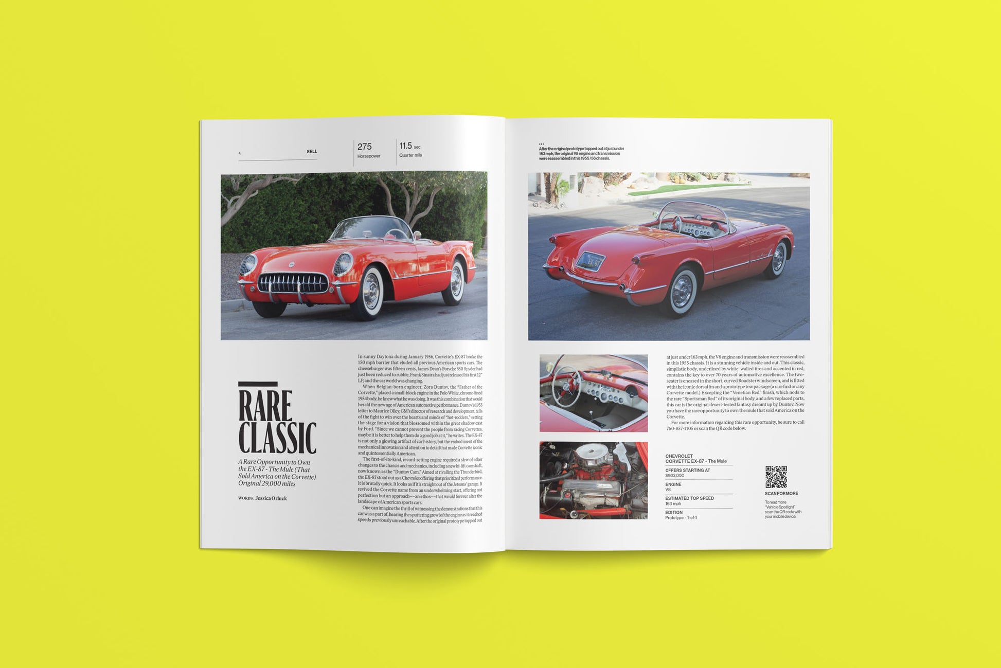 Our SELL section, features the rare Corvette EX-87 prototype on page 88. Engineered by Zora Duntov, this iconic car embodies American automotive innovation. Its record-setting engine and design mark a pivotal moment in Corvette history, making it a true collector's gem.